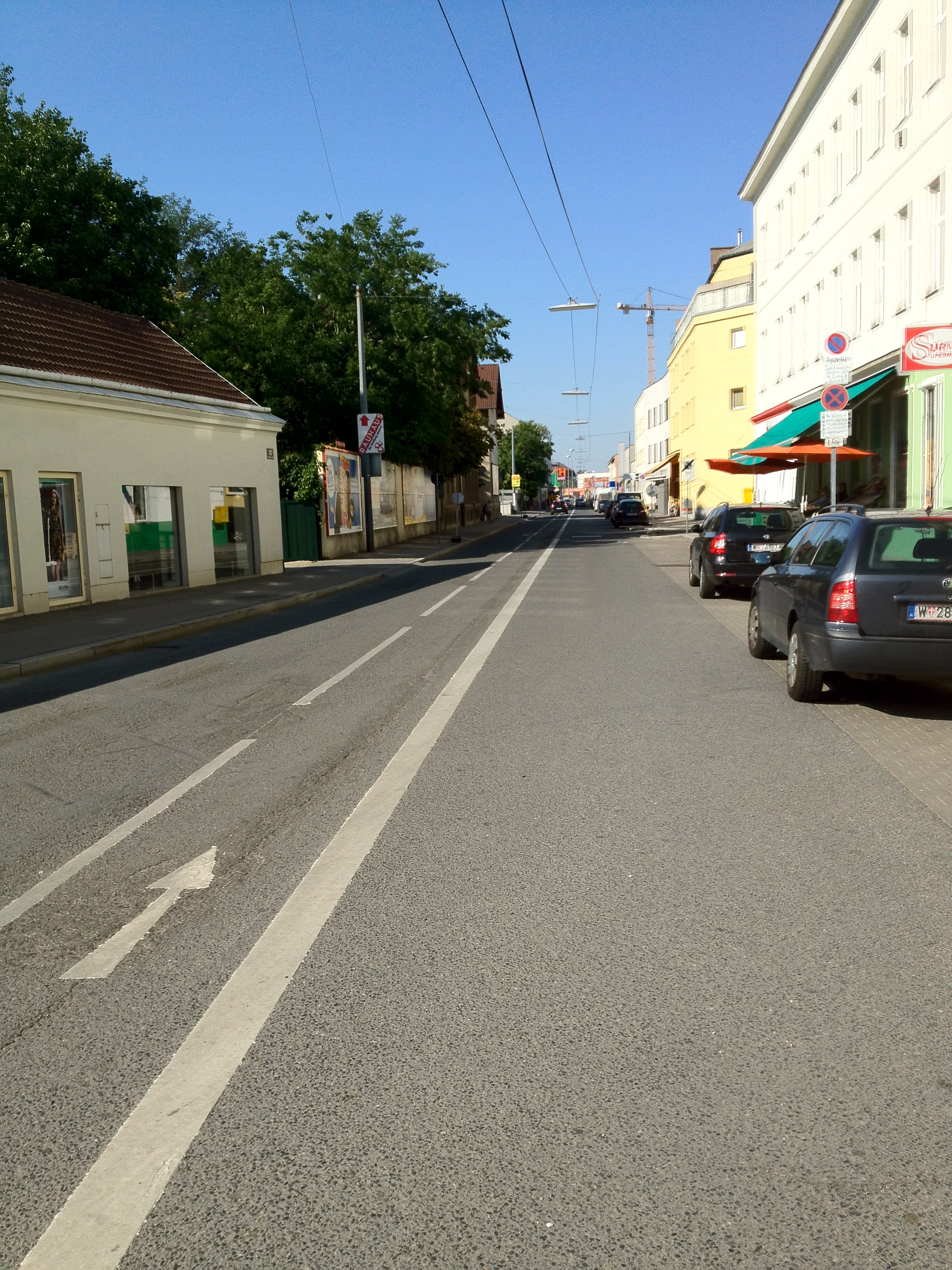Besser sieht es jedoch in der Stadlauer Straße selbst aus. Hier ein Foto, das am 18.6.2012 bei der Kreuzung mit der Langobardenstraße in Blickrichtung Erzherzog-Karl-Straße gemacht wurde.